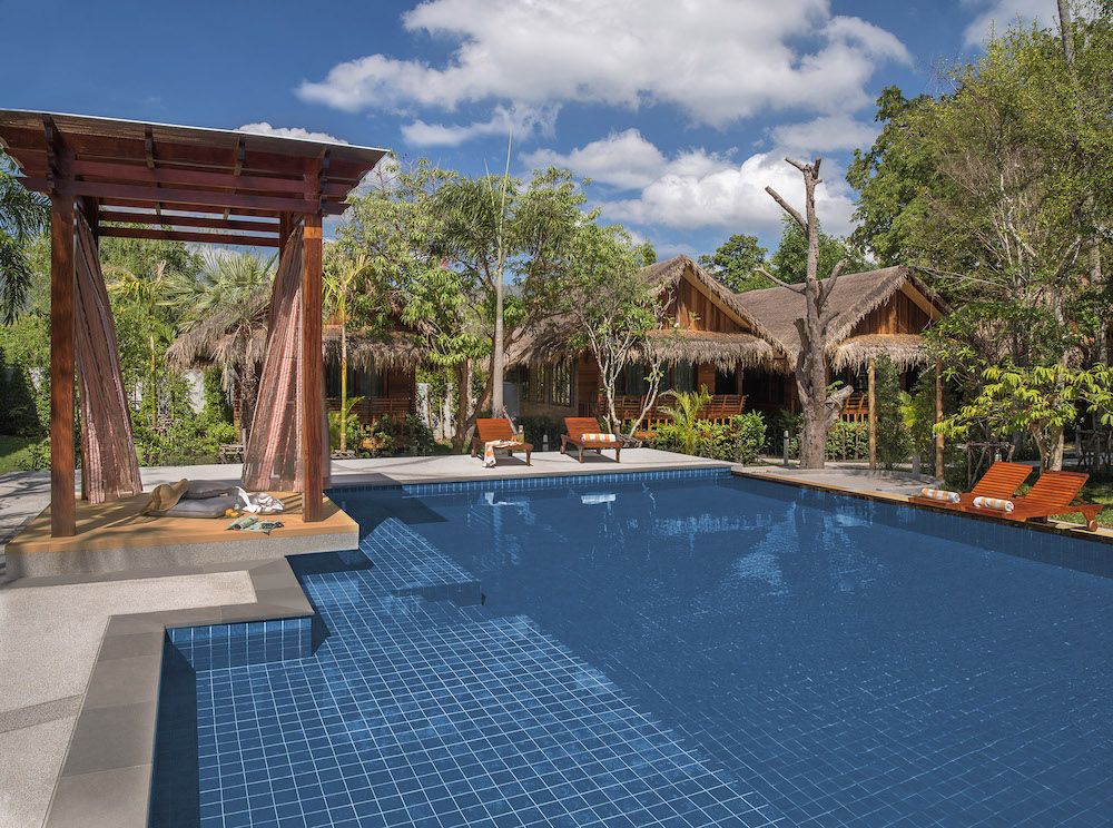 โมเสคสระว่ายน้ำที่ถูกออกแบบด้วยเทคนิค Antique ให้ความรู้สึกมีมิติแบบสมจริง ออกแบบโทนเขียว ฟ้า หลายระดับ เพื่อให้อารมณ์ของน้ำที่แตกต่างกัน