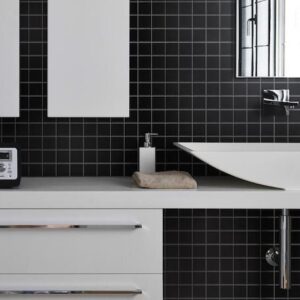 โมเสคขนาด 2.3 นิ้ว หน้ามัน สีดำ สไตล์ Modern เรียบ เท่ ทำความสะอาดง่าย ปูได้ทั้งพื้นและผนัง
